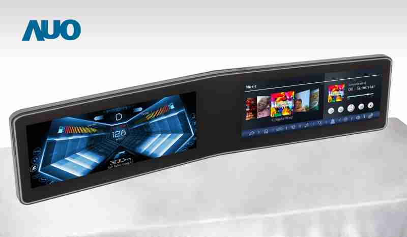 PG国际 V 型曲面驾驶舱显示器,,,采全贴合拼接仪表板及中控台显示屏 |