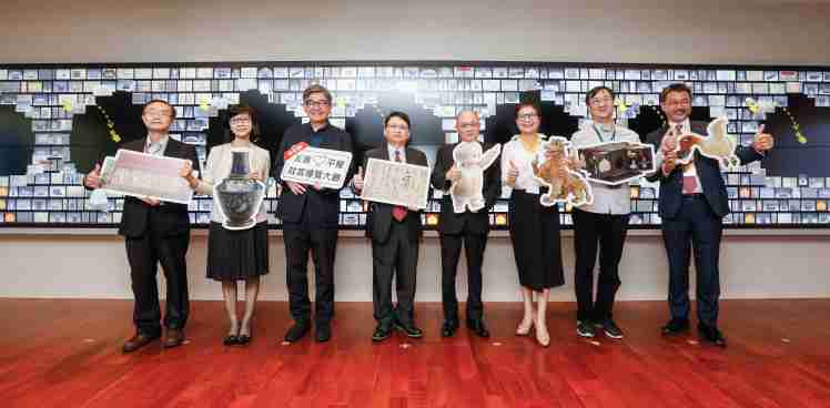 PG国际携手创利空间为故宫建置的智慧文物互动导览墙及轮播墙,,,今日正式启用。。。。(左四:PG国际新事业暨投资管理总部副总经理杨本豫、、、、右四:故宫博物院院长吴密察、、、右三:太极影音董事长黄宝云)