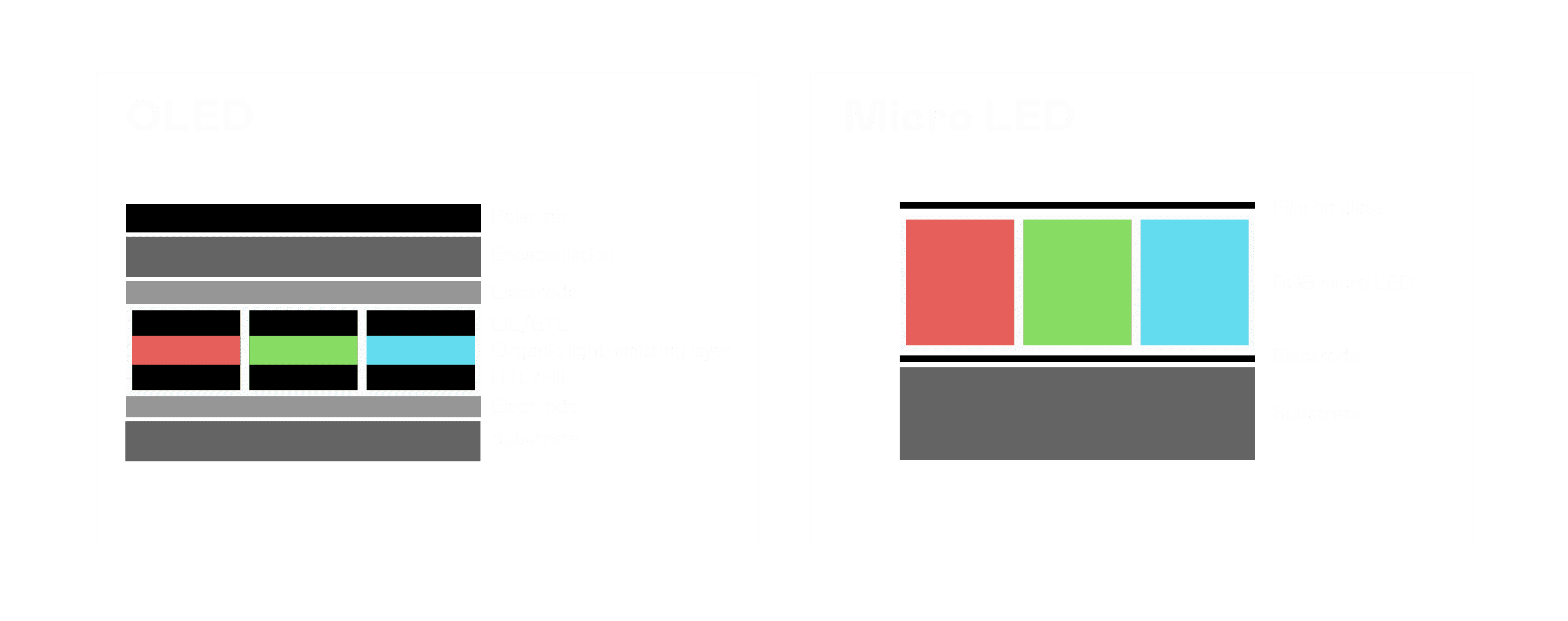 以 LED 做为显示画素,,,,可让 LED 的发光效率发挥到极致,,从而让显示器具备优异的亮度表现,,,,不论是在户外或室内,,,,均具备出众的显示效果。。同时,,与使用有机材料的 OLED 相比,,,,LED 具备更稳定、、、寿命更长的特性,,,,不仅不会有画面烙印问题,,,而且更不容易出现故障、、、坏点。。。